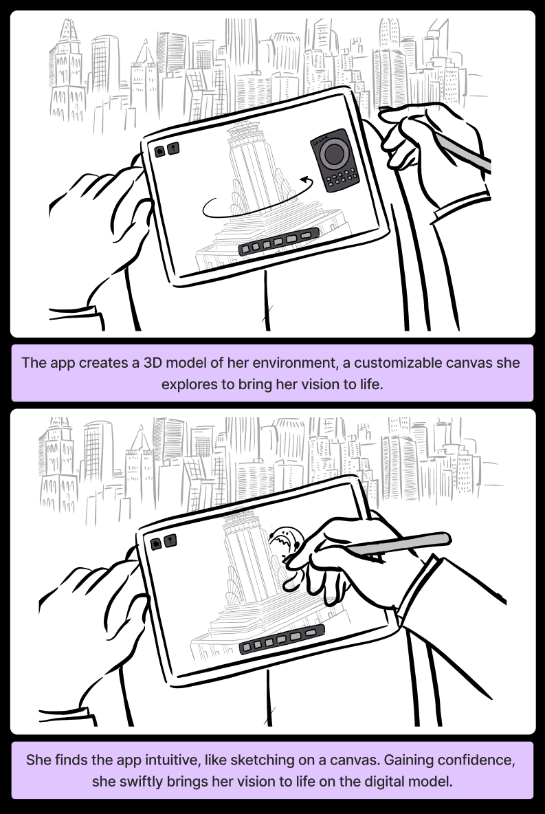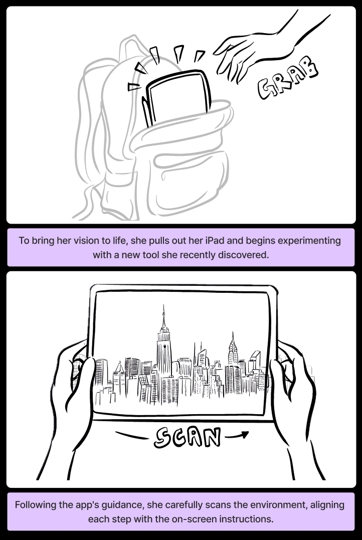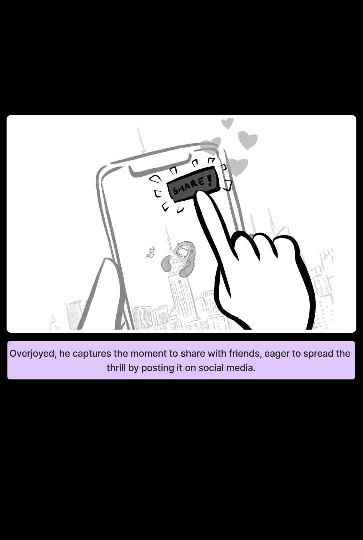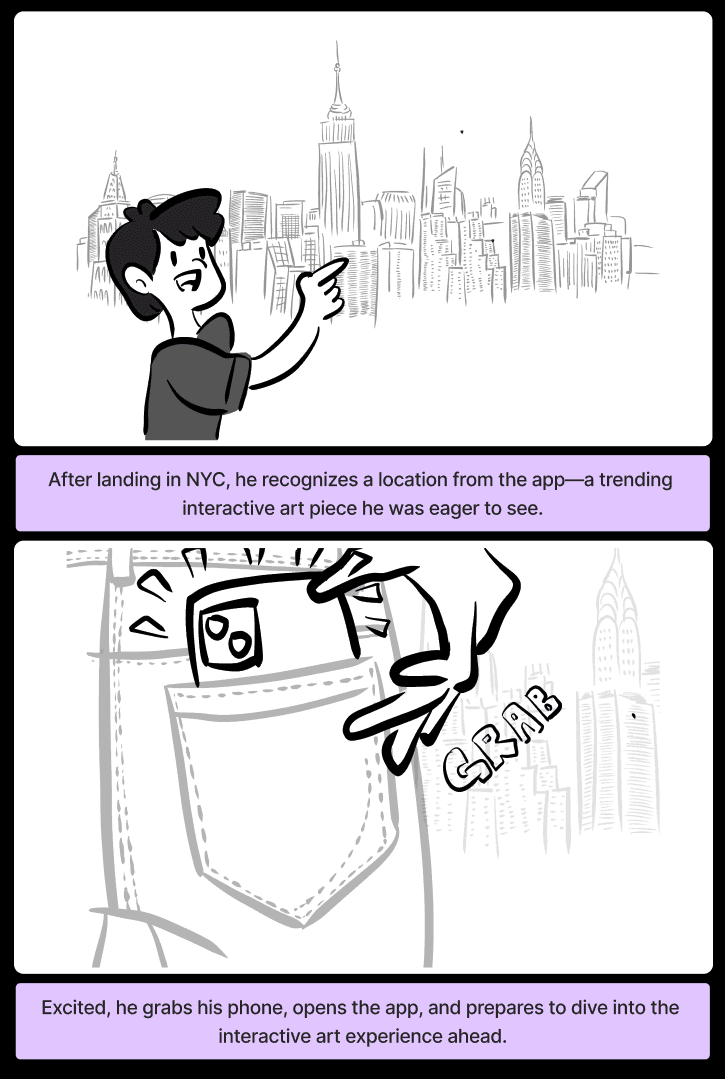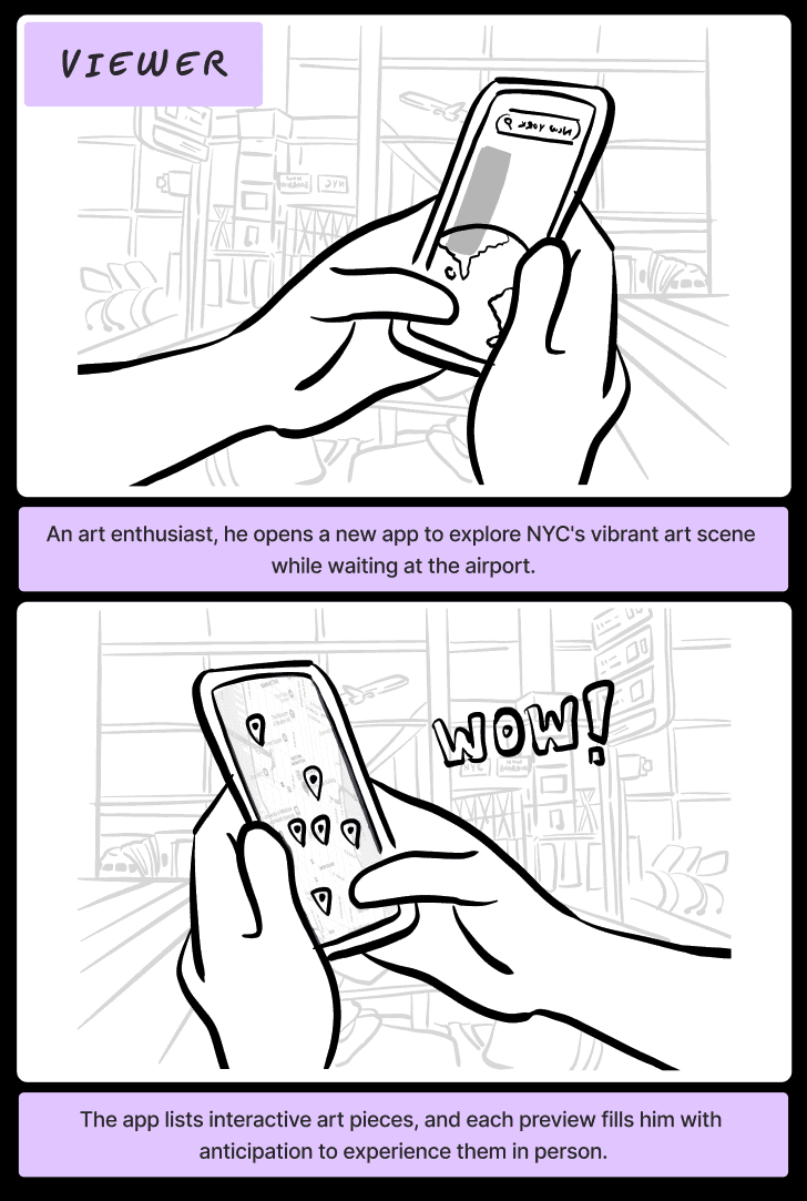 Building on the user personas, we created storyboards to visualize scenarios for both creators and viewers, focusing on their distinct interactions with the platform.