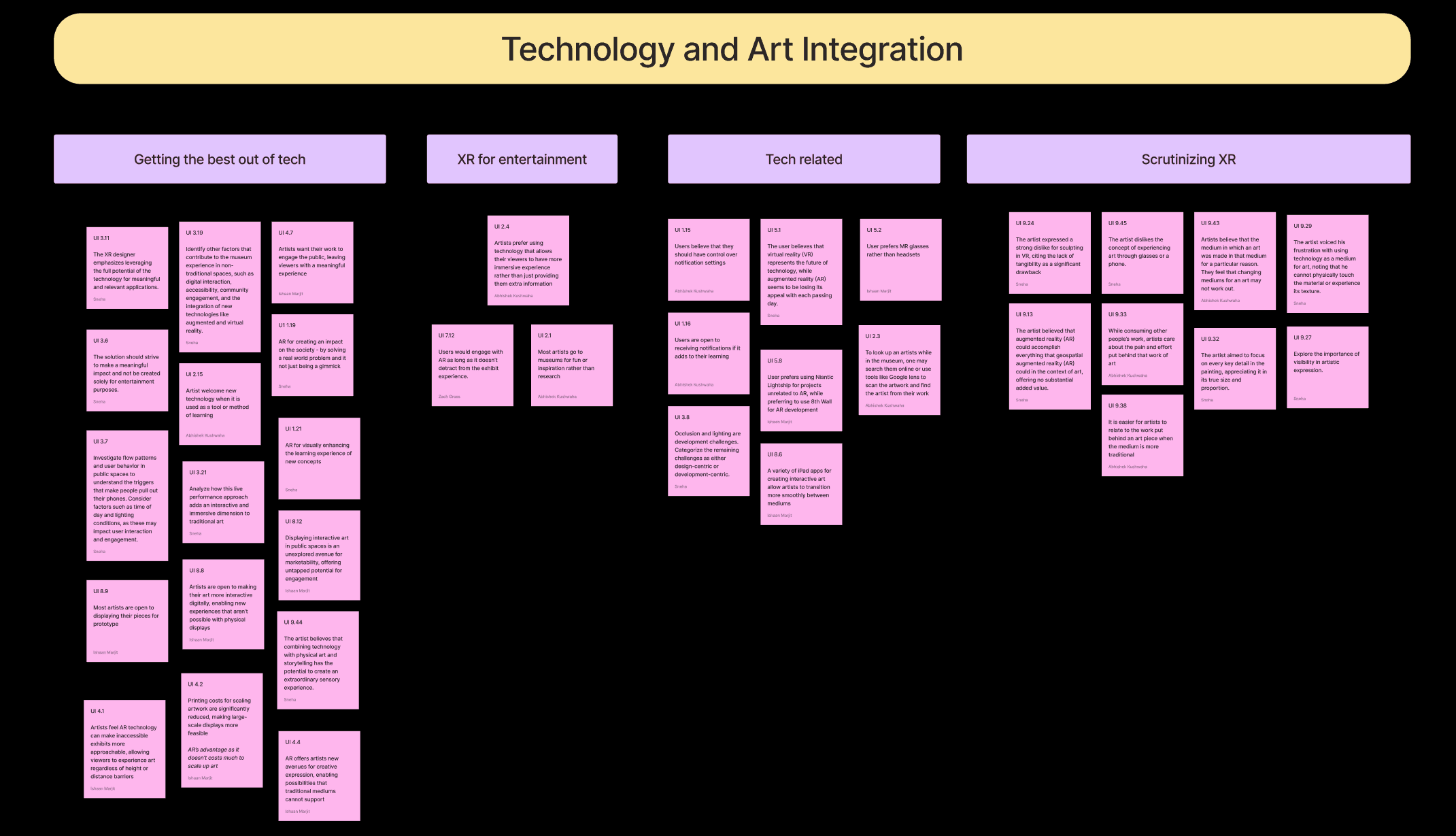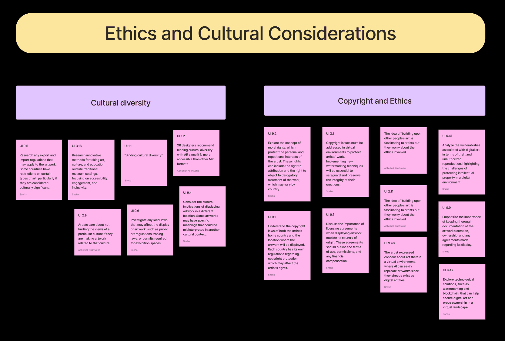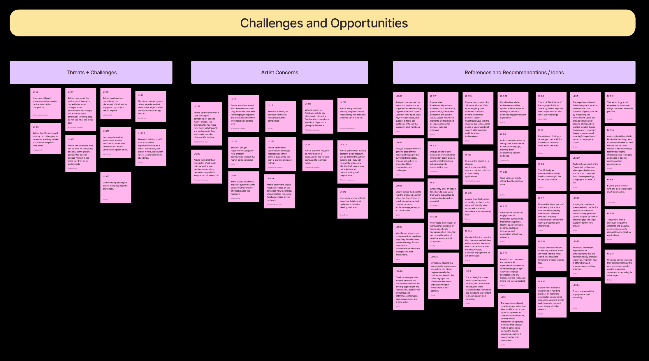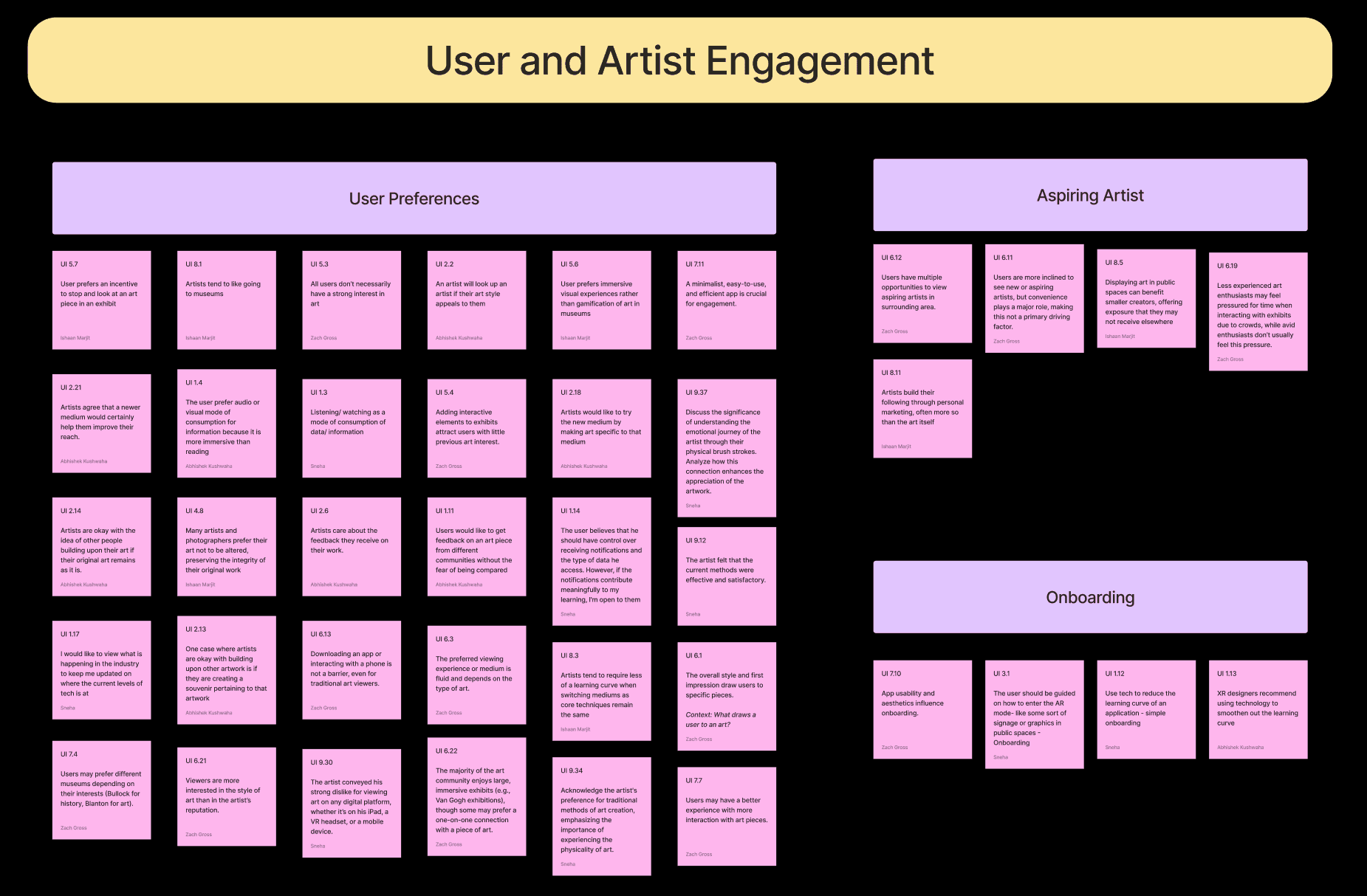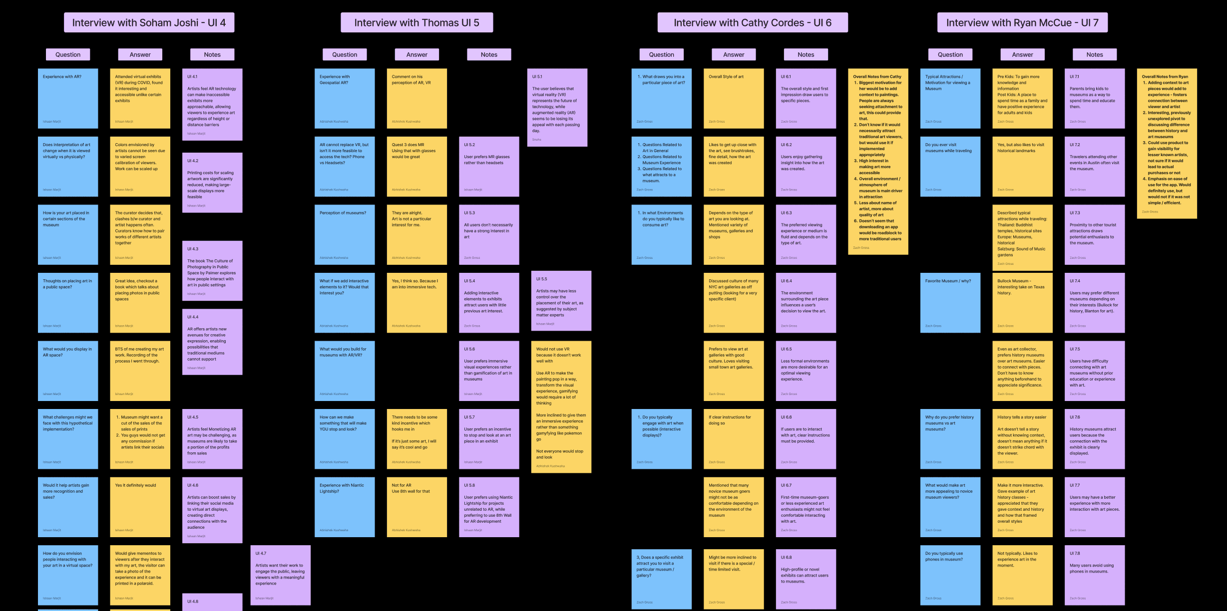 We conducted interviews with 9 Subject Matter Experts (SMEs), including artists, XR professionals, and museum curators, to uncover pain points, understand user needs, and assess the feasibility of integrating AR into art experiences.
